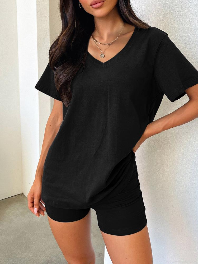• Women's Two Piece Casual Lounge Set V Neck Short Sleeve T-Shirt And High Waist Biker Shorts Workout Tracksuit Outfit Slim Fit Polyester Spandex Sporty Commute Suit