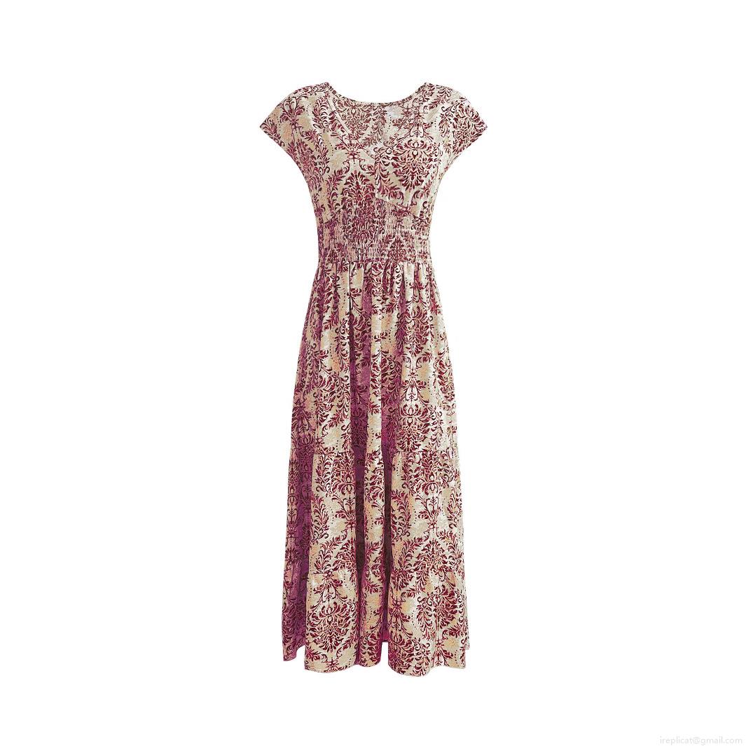 • Women's Vintage Bohemian Floral Print Maxi Dress Elegant V-Neck Short Sleeve High Waist A-Line Long Dress For Summer Vacation Beach Party Plus Size