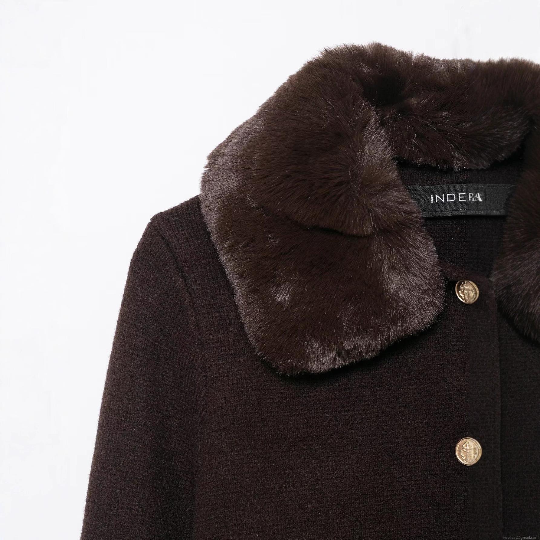 Solid Color, Knitted Texture, Artificial Fur Collar, Gold Embossed Buttons