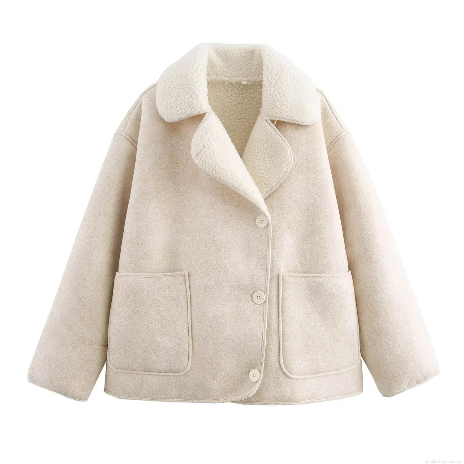 • Women's Vintage Faux Shearling Leather Jacket Casual Oversized Button Up Lapel Outerwear Solid Color Warm Streetwear Winter Coat With Pockets