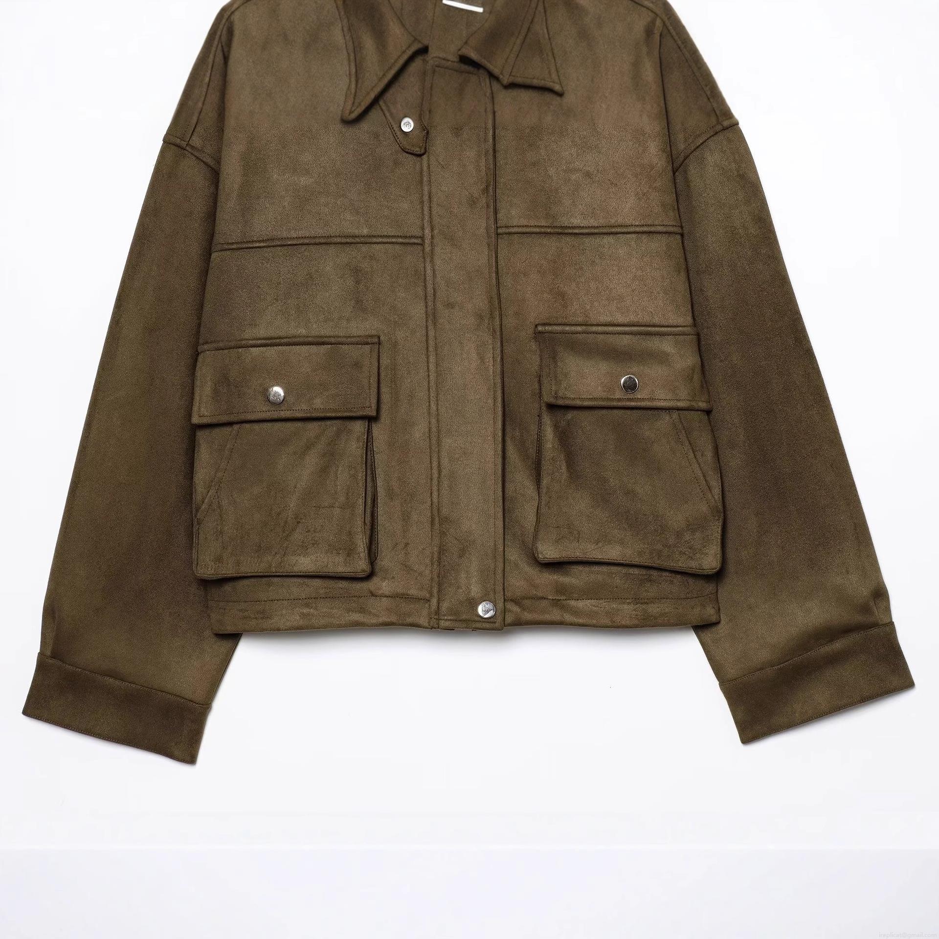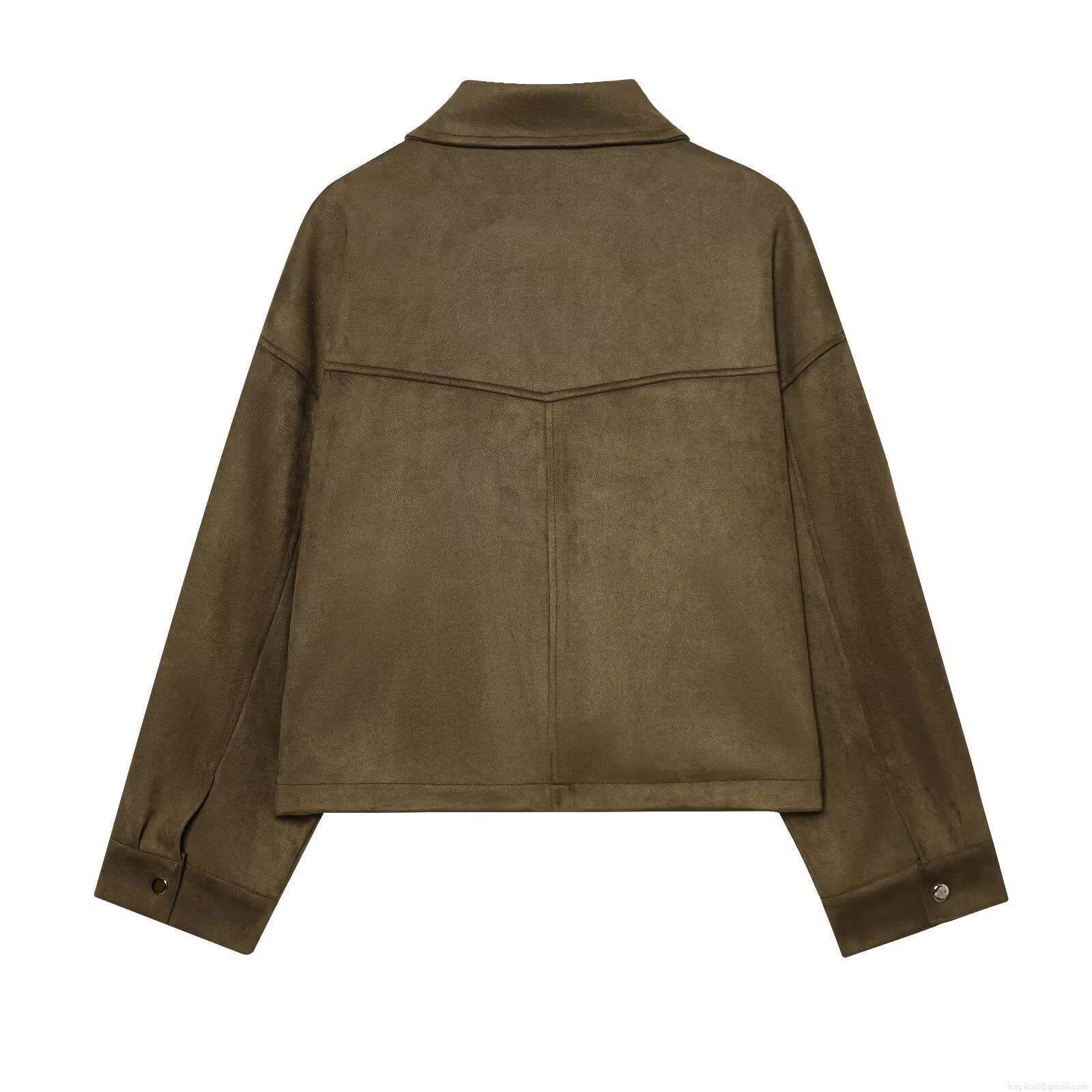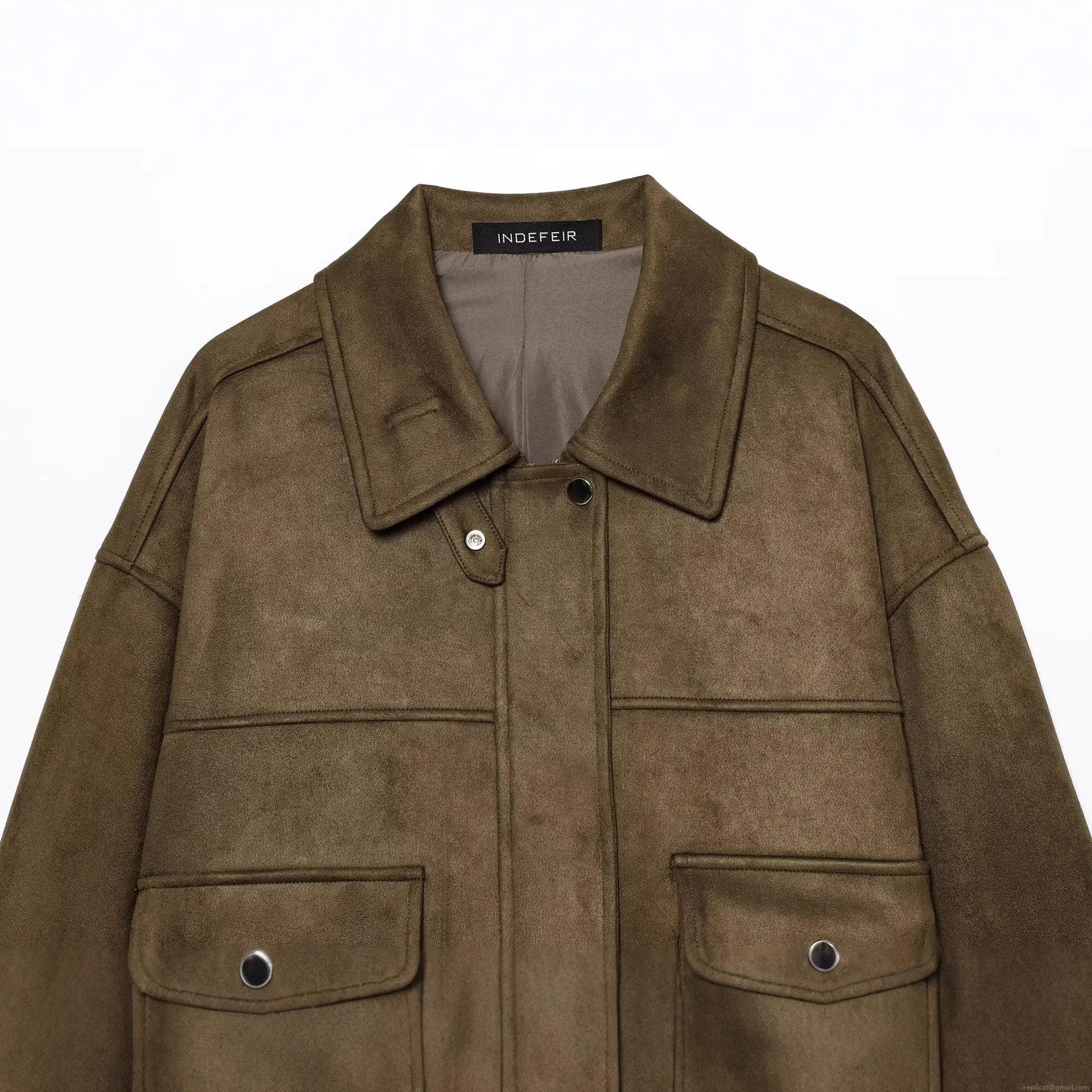 • Women's Vintage Faux Suede Aviator Jacket Loose Fit Lapel Long Sleeve Outerwear With Pockets Solid Color Casual Streetwear Coat
