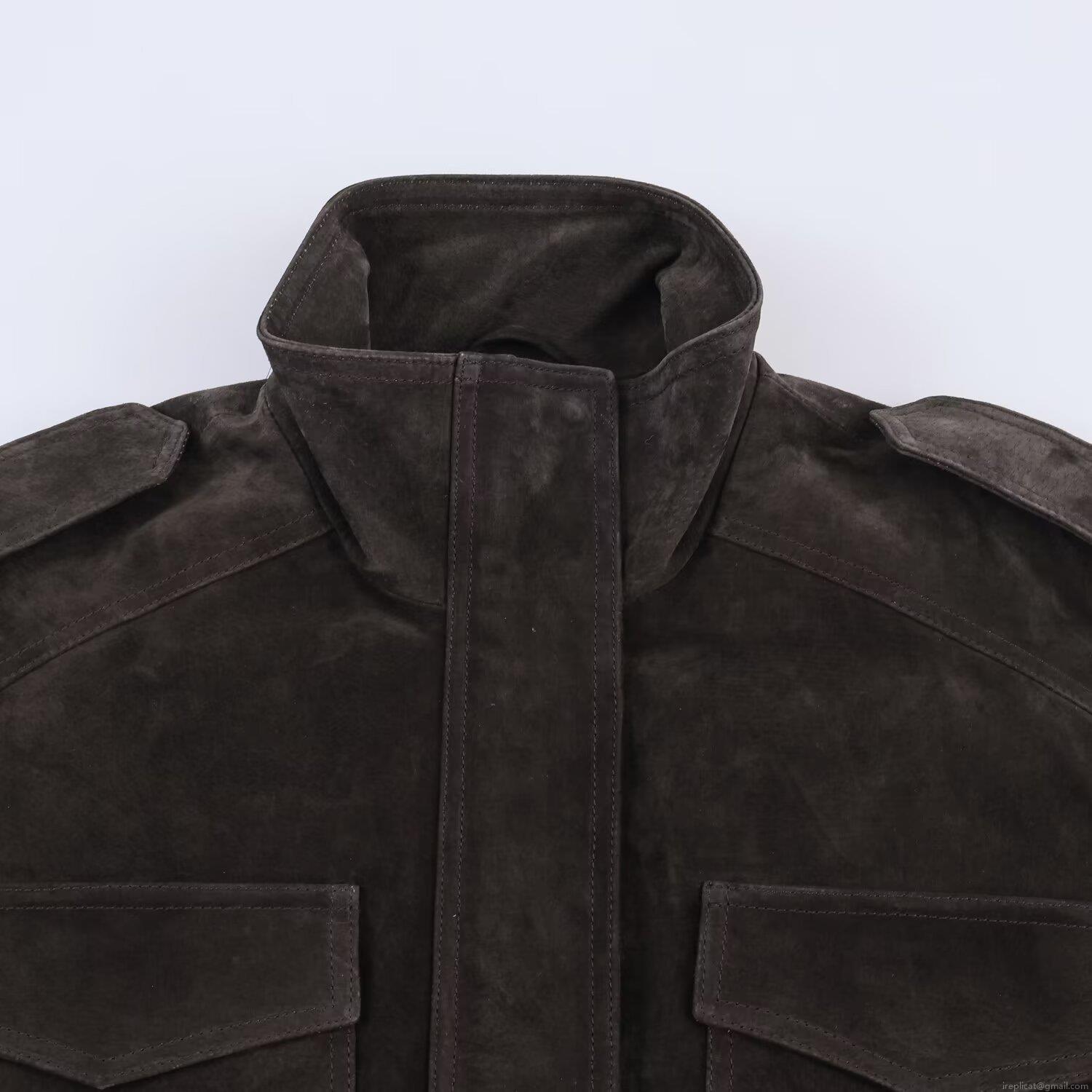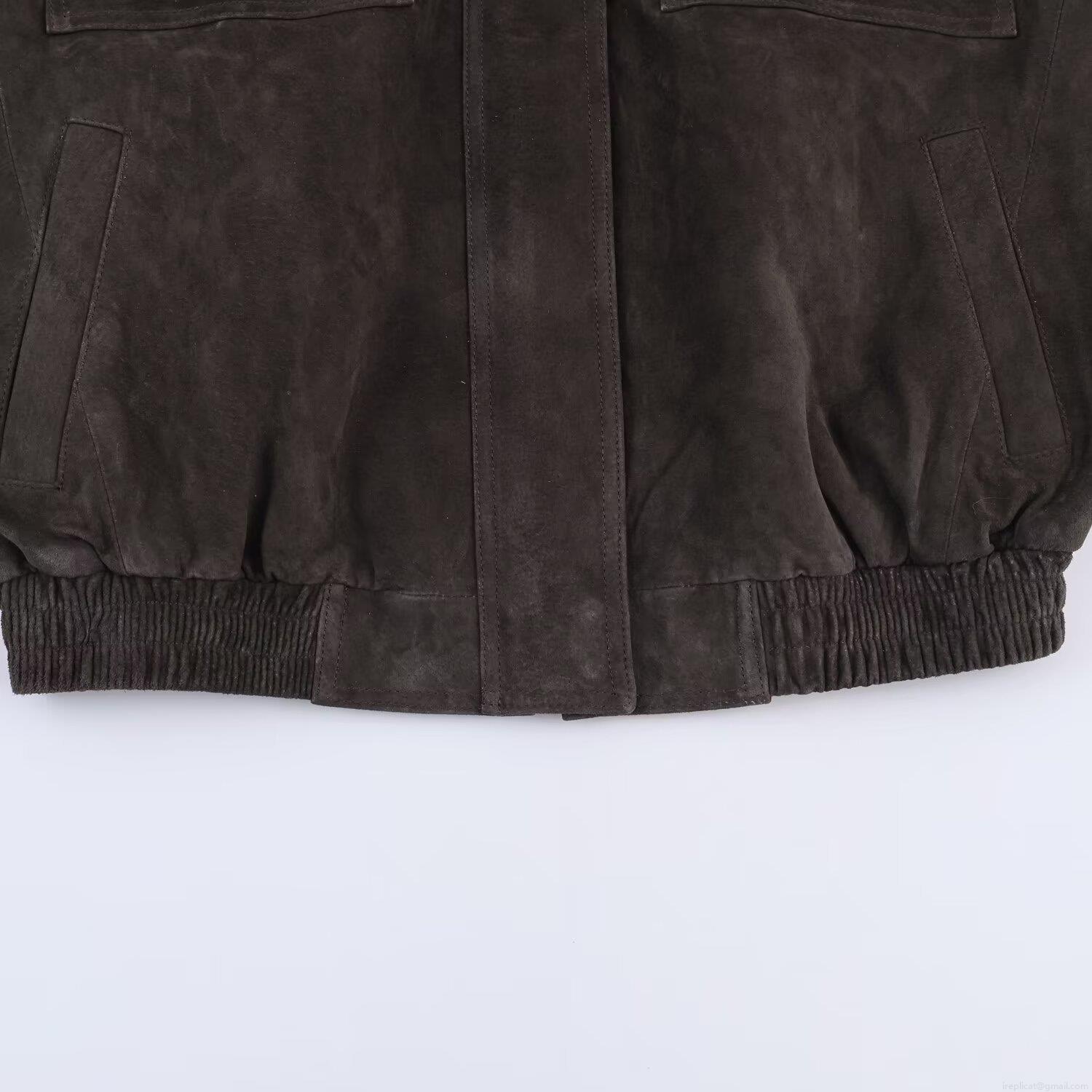 • Women's Vintage Faux Suede Leather Jacket Short Bomber Style Coat With Epaulettes Stand Collar Zip Pockets Solid Color Casual Outwear Ladies Fashion Jacket