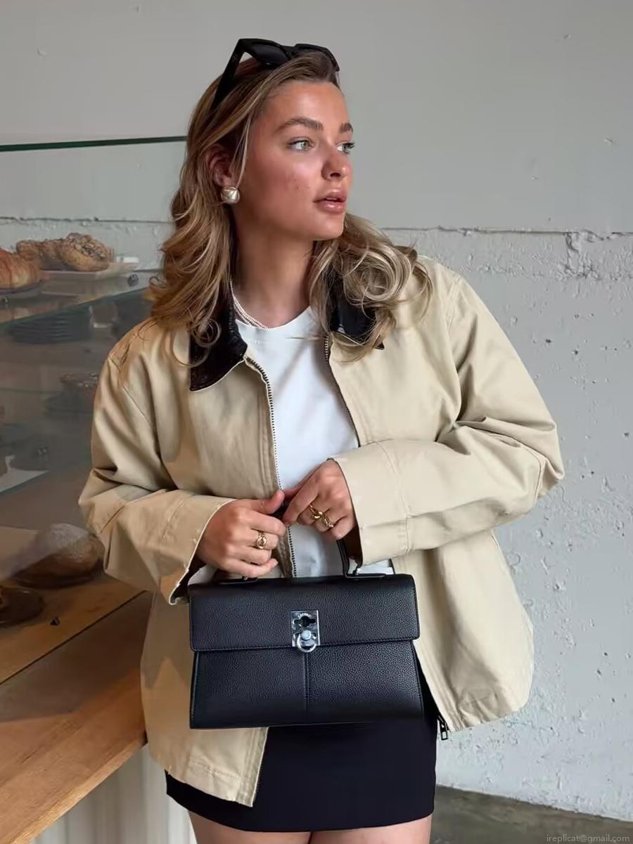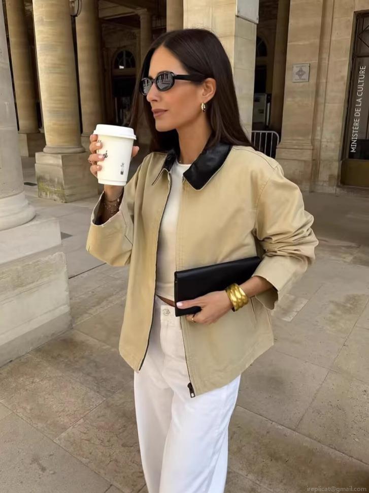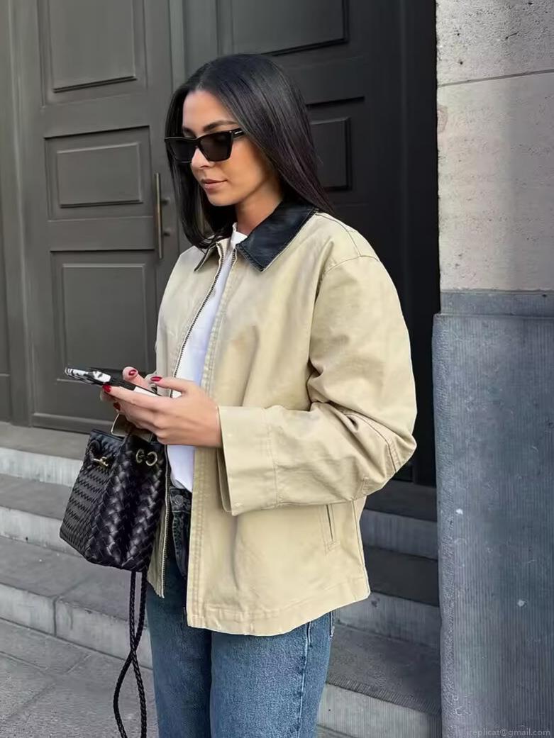 Splice, Color Blocking, Metal Zipper, Pu Collar