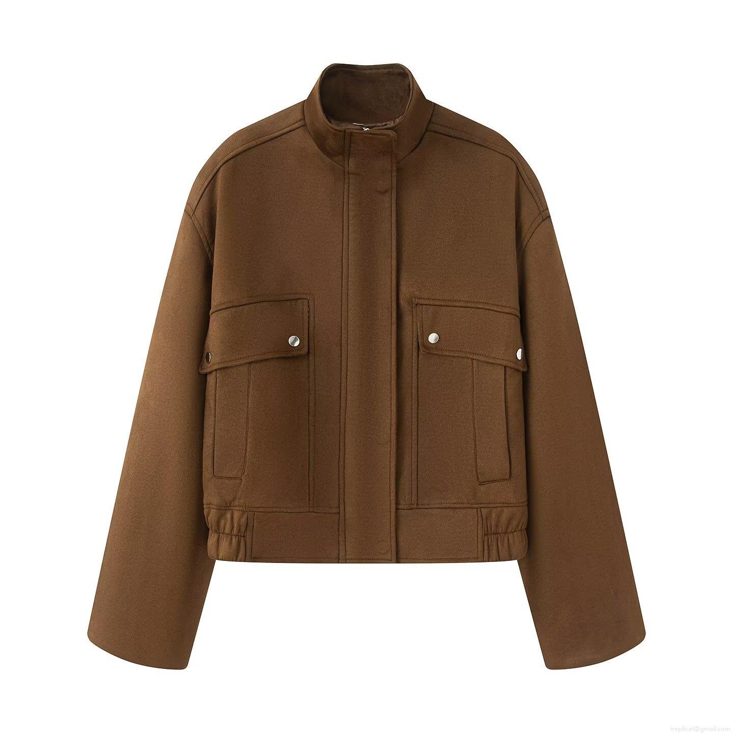 Women's Vintage Suede Jacket Coat Loose Fit Stand Collar Zip Up Outerwear Long Sleeve Pocket Casual Street Fashion Women Spring Autumn