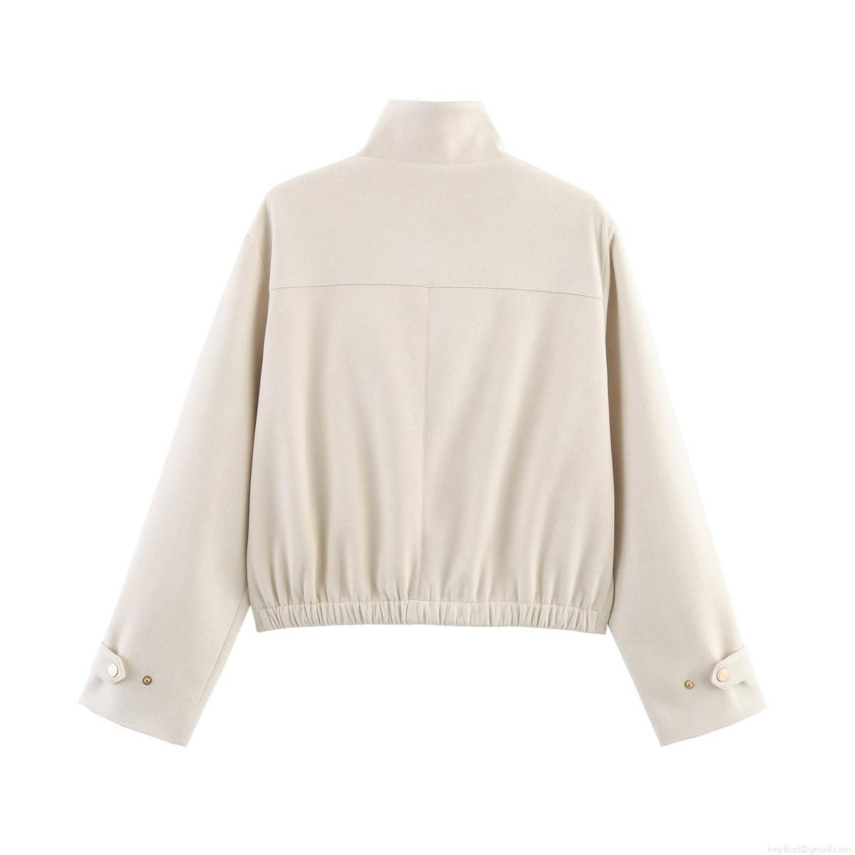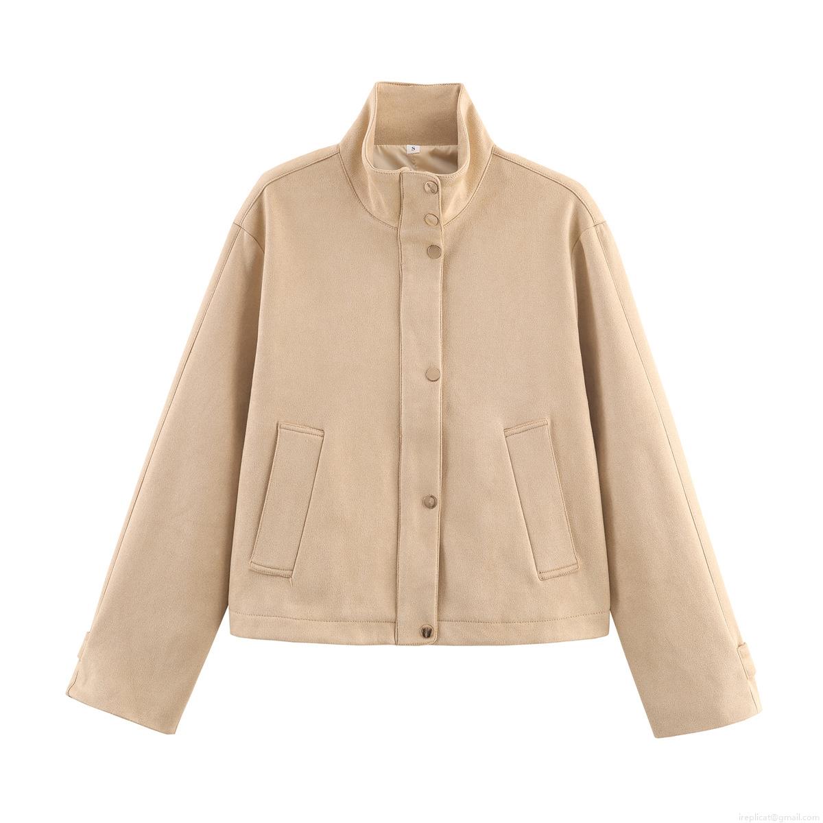 • Women's Vintage Suede Jacket Stand Collar Short Outerwear With Metal Buttons Solid Color Loose Fit Casual Chic Coat Streetwear For Women Autumn Winter