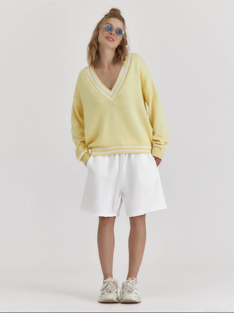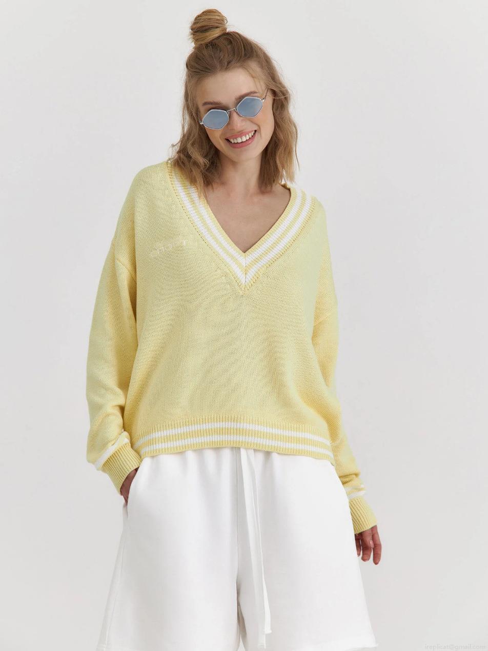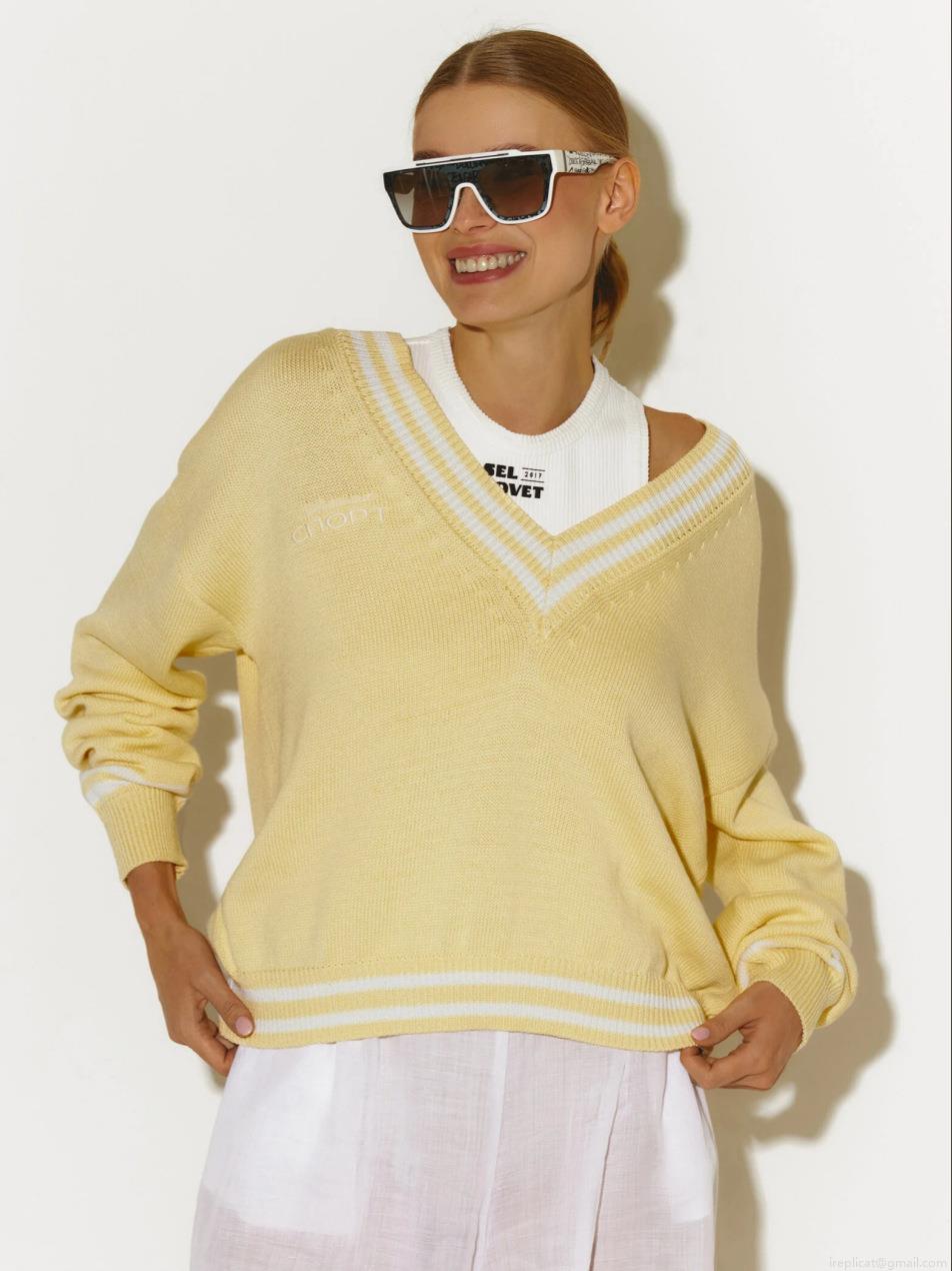 • Women's Vintage V-Neck Knit Sweater Cotton Blend Loose Fit Striped Trim Colorblock Long Sleeve Pullover For Autumn Winter Preppy Style Casual Knitwear