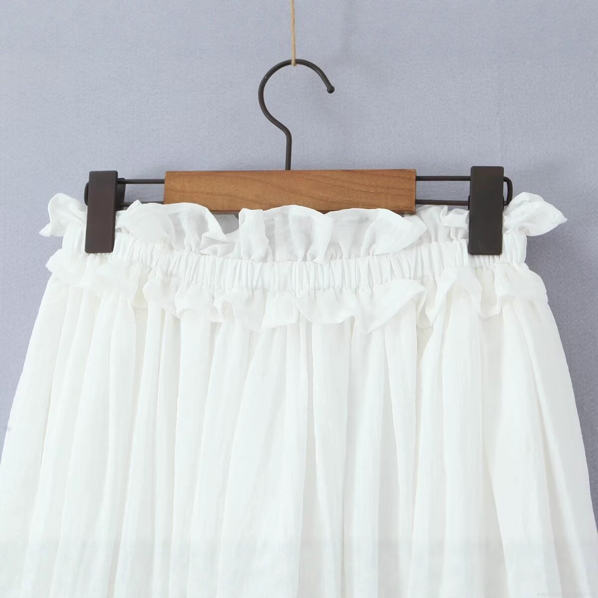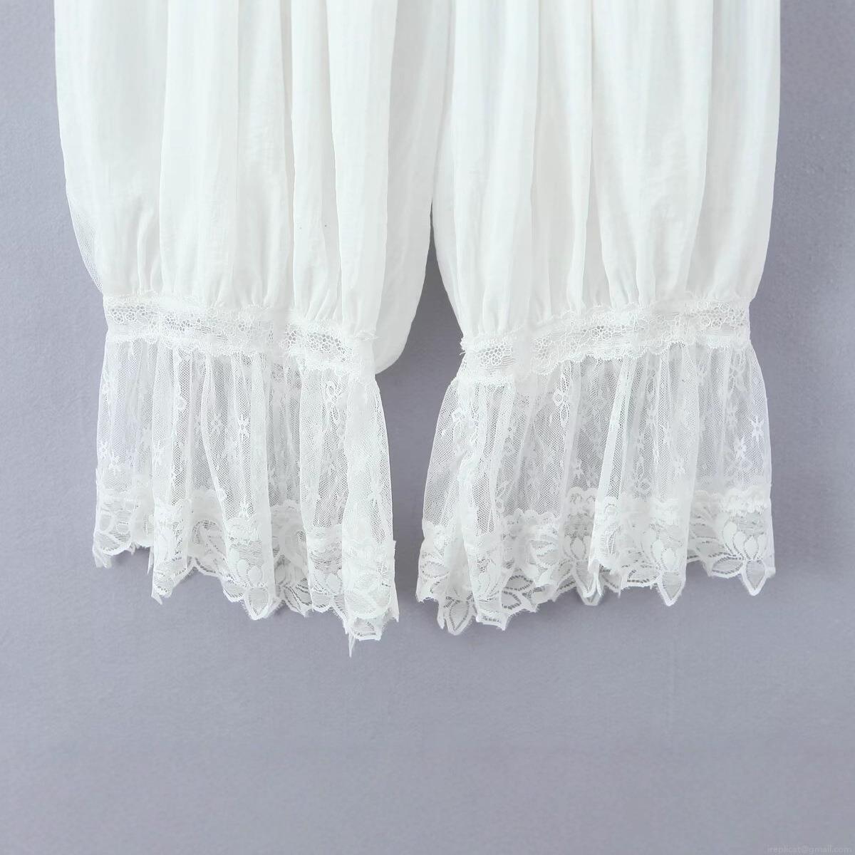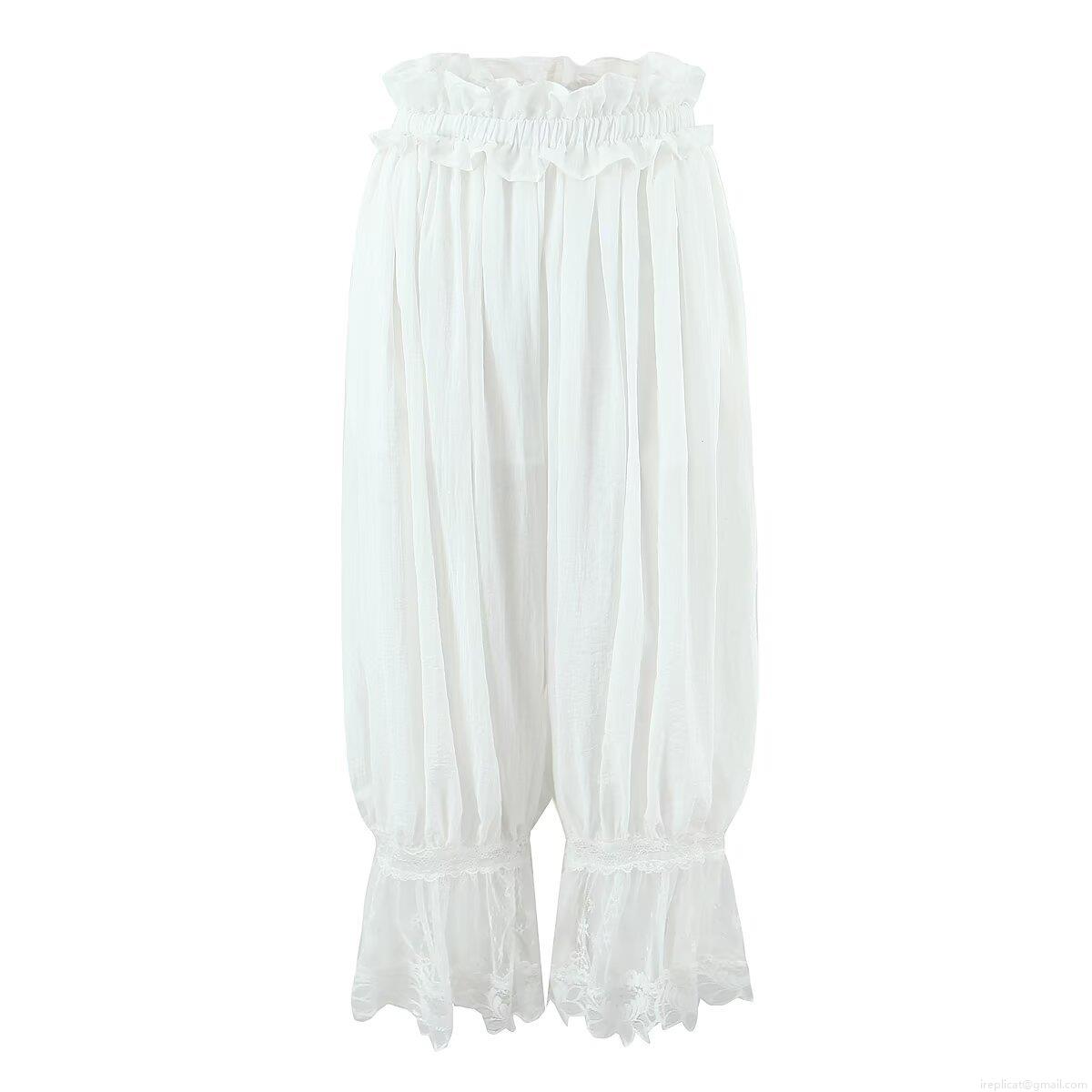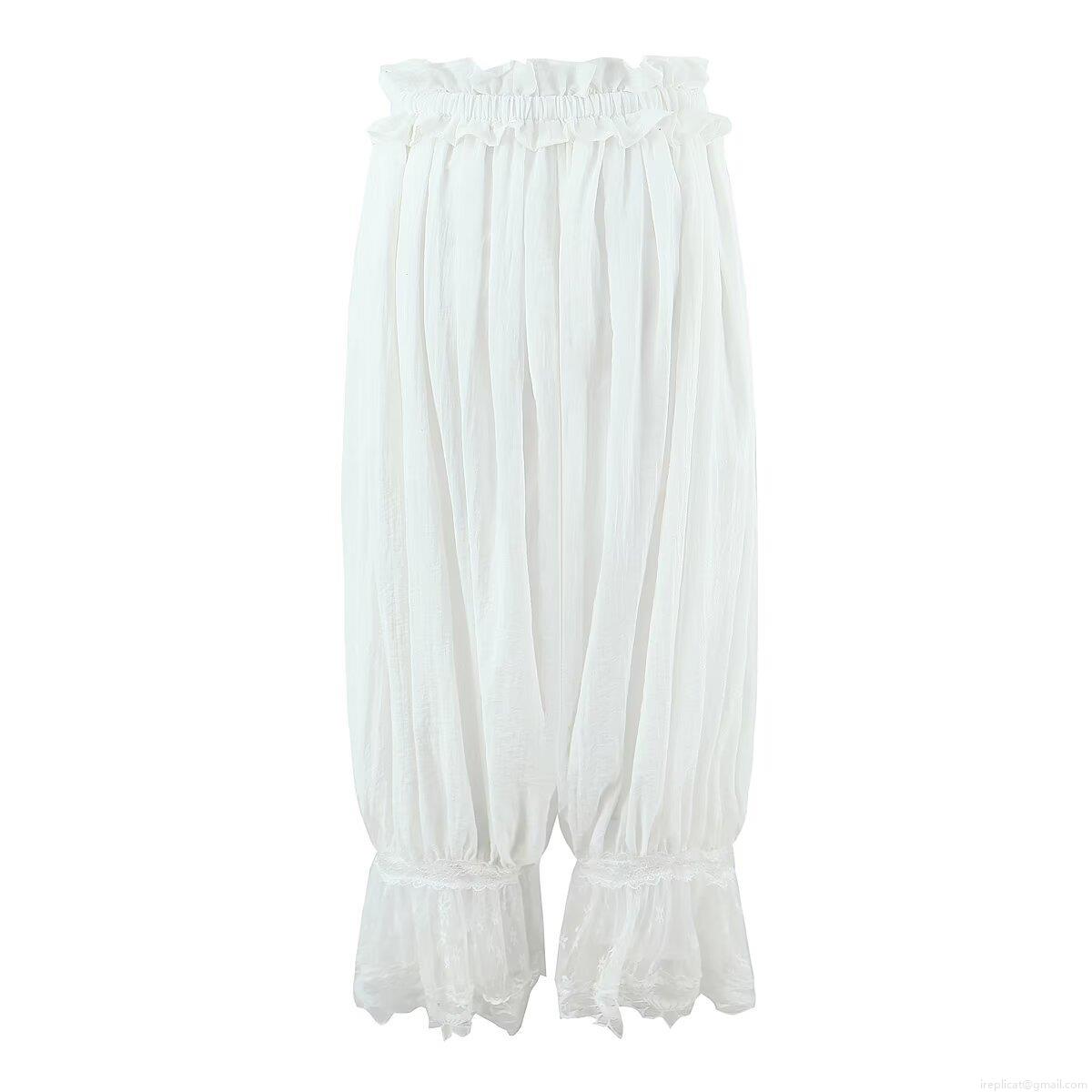 • Women's White Lace Patchwork Lantern Pants Rayon Nylon Blend Elastic High Waist Ruffle Loose Casual Trousers For Vacation Streetwear