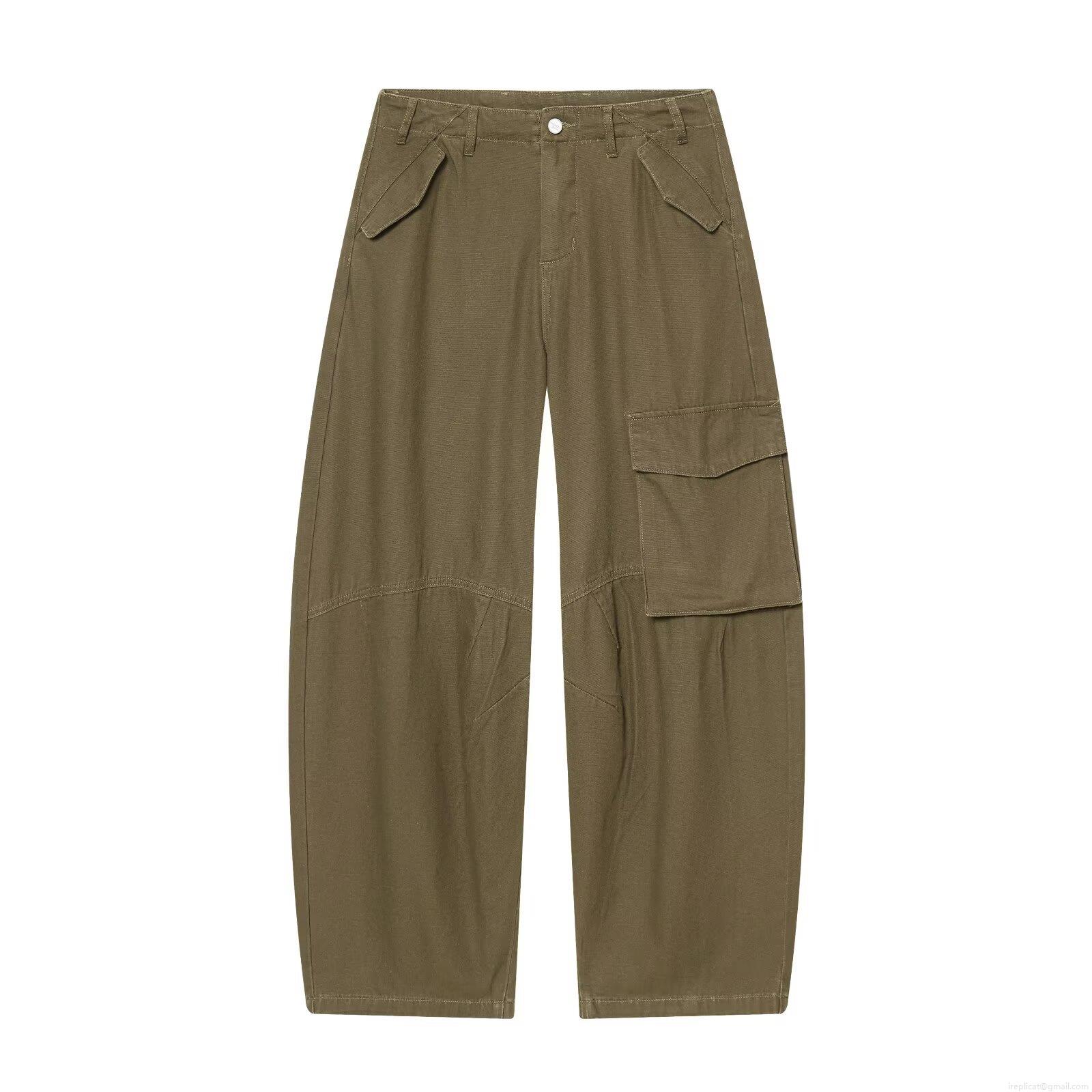 Women's Wide Leg Cargo Pants Casual Mid Waist Streetwear Trouser With Multi Pockets Army Green Loose Fit Polyester Oxford Cloth Pants For Women